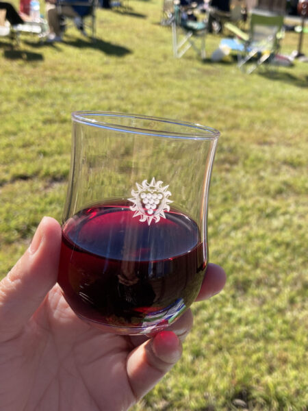 フェスタでは、ワイナリー内の芝生エリアにビニールシートを広げ、チーズの盛り合わせなどを注文して、ゆったりと新酒を堪能。外の空気とワインの香りが相まって、まさに秋の贅沢なひとときでした。