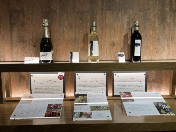 売り場には、マンズワイン様の代名詞である「ソラリス」シリーズをはじめ、さまざまなラインナップが並びます。 その中で「あまつひ」シリーズ、「酵母の泡」シリーズ、「山梨」シリーズ、「Chikumagawa」シリーズなど、私がラベルデザインを担当させていただいた商品も多く、ずらりと並ぶ様子を拝見して感慨深い気持ちになりました。