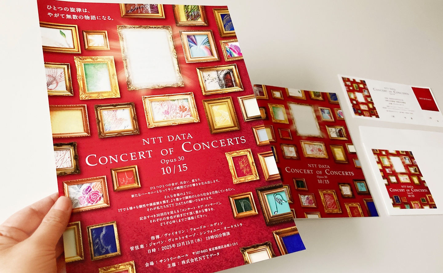 2025年10月に行われたヴィルトーゾオーケストラのクラシックコンサートツールのデザインとコピーを手がけました。主催は株式会社NTTデータ様で毎年1度の貴重な演奏会で第30回を迎えました。今回記念すべき30回を迎えたこと、プログラムもヴァイオリニストでもある指揮者の弾き振りのツィガーヌ、交響組曲 Zガンダム、マーラーの交響曲とバラエティに富んだ内容であることをテーマに制作しました。
